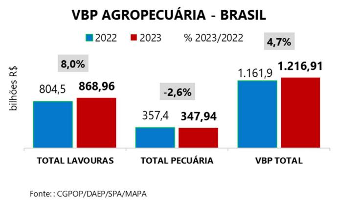 Valor Bruto da Produção Agropecuária de 2023 é estimado em R$ 1,216 trilhão